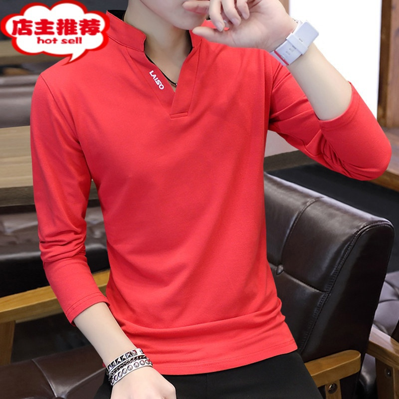 新款男士长袖t恤V领潮牌上衣服小衫潮流卫衣男 ...