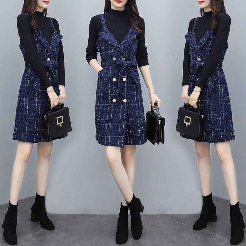 新款名媛风打底小香背带裙女收腰显瘦连衣裙子两件套装女装